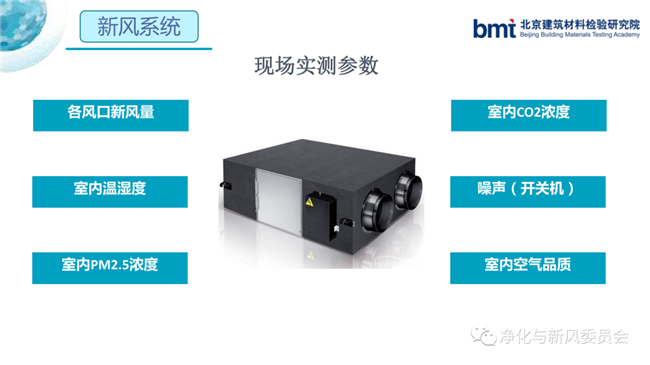 魏晨晨表示,前面兩位專家就新風系統的實用性做了介紹,她分享新風系統的關鍵指標檢測與驗收,分為三個方面,新風系統的關鍵指標、新風系統的產品檢測、新風系統的驗收檢測。